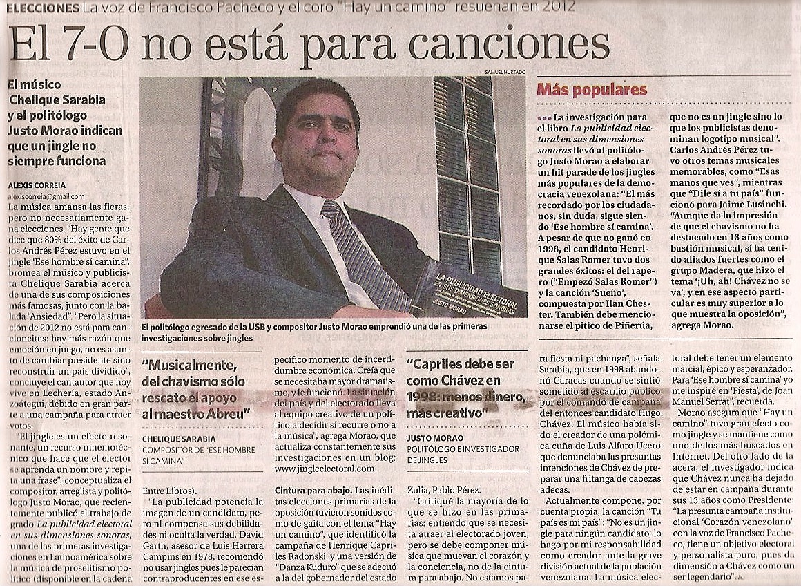mayo 5, 2012 Justo Morao – El Nacional – Mayo 5/2012 1160 × 848 in Justo Morao en entrevista del diario El Nacional sobre los Jingles Electorales