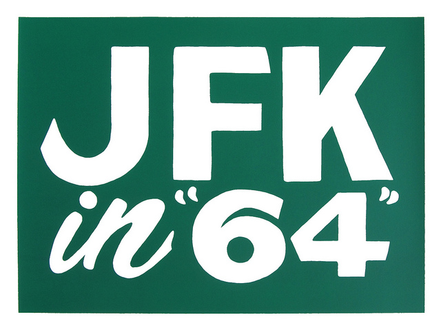 Entre las multitudes que se abalanzaban hacia el carismático líder se podían leer pancartas y afiches de pre-campaña con la leyenda «JFK in 64».