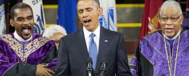 Esta ocasión no ha sido la excepción. En un servicio eclesiástico dedicado a elogiar al pastor Clementa C. Pinckney, quien fuera además de reverendo de la Iglesia Episcopal Metodista Africana Emanuel y miembro del Senado por el Estado de Carolina del Sur por el partido Demócrata, el presidente Obama en medio de sus discurso sorprendió a su audiencia al cantar «Amazing Grace», un hermoso himno cristiano escrito en 1779 por el inglés John Newton, muy popular entre los cristianos evangélicos de habla inglesa ya que su letra se refiere al perdón y a la redención de las almas. EL reverendo Pinckney fue una de las víctimas de los asesinatos de Charleston, Carolina del Sur, ocurridos en julio de 2015. Obama con su astuto sentido de la oportunidad pudo dar un toque emotivo cuando en un momento de silencio comenzó a cantar este maravilloso himno colmando de lágrimas y aplausos de alegría a la audiencia que se encontraba en la Iglesia.