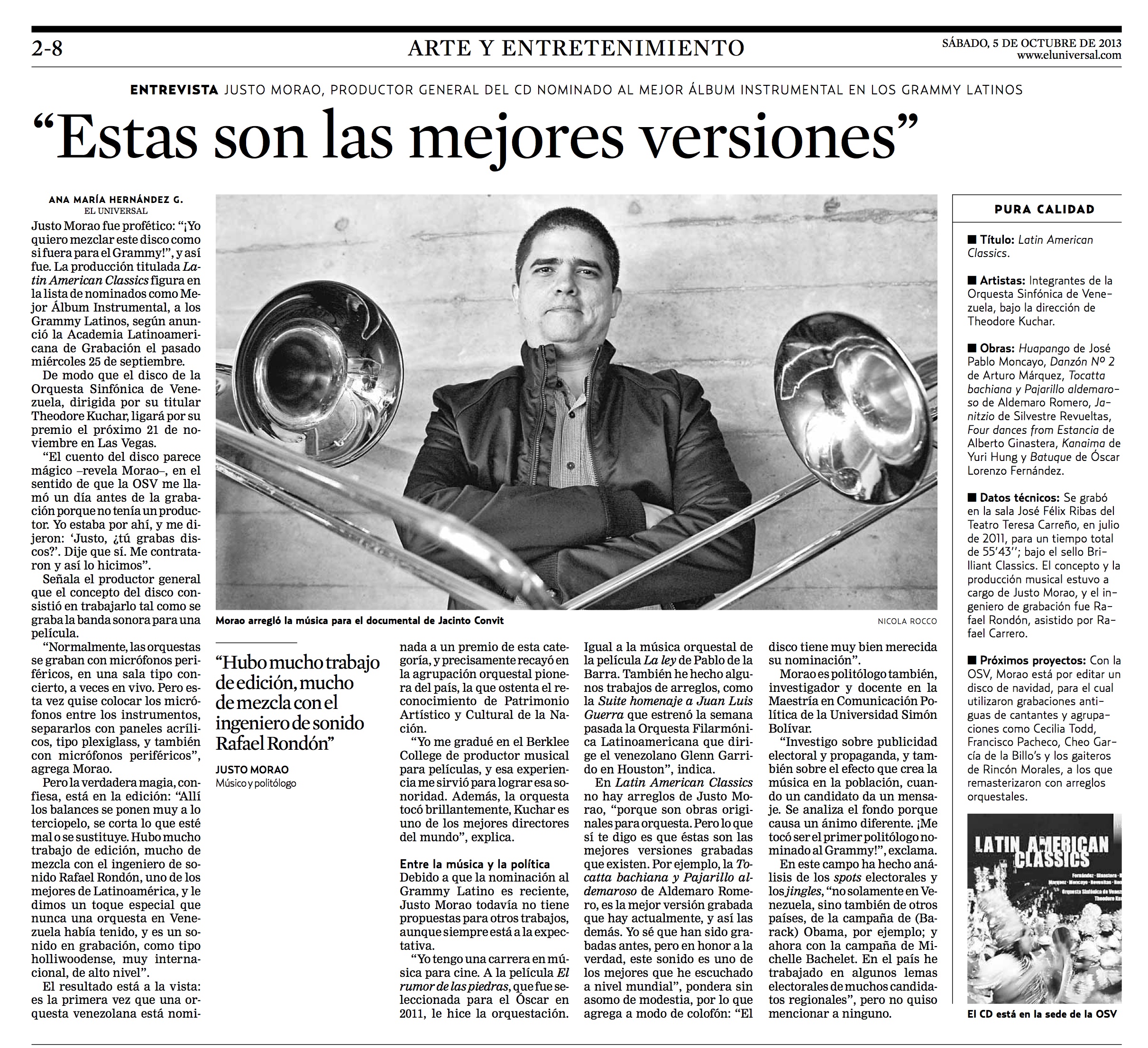 Le agradezco enormemente a la periodista Ana María Hernández por esta entrevista que me realizó para el diario venezolano El Universal, publicada el 5 de octubre de 2013.