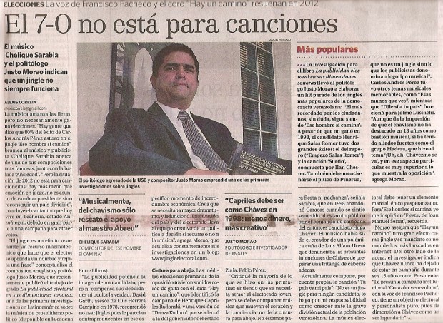 Partidos como Primero Justicia y Voluntad Popular han hecho piezas audiovisuales que apoyan la campaña del comando Venezuela Unida, en contraste el único vocero de la propaganda del Polo Patriótico es el Psuv. Para Morao este fenómeno es producto de que el uso del poder es distinto.
